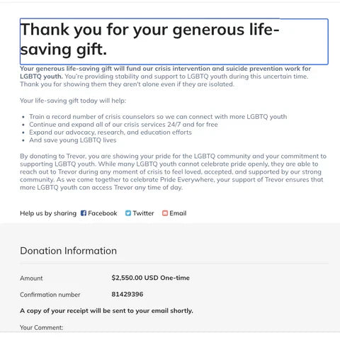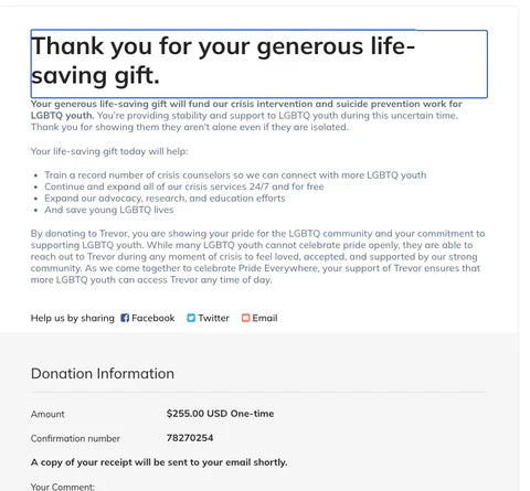 We have taken this initiative in 2023 and already started donating to The Trevor Project to begin with.